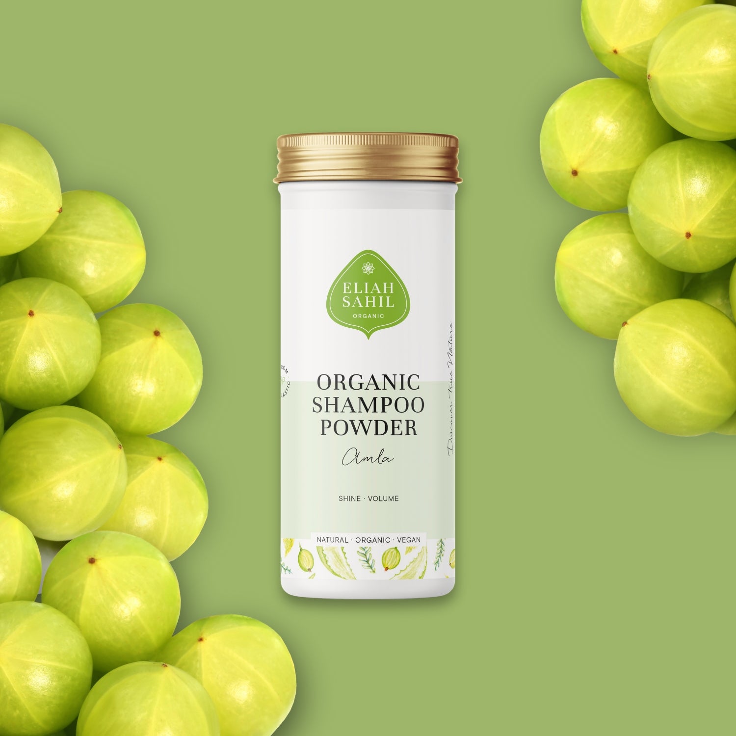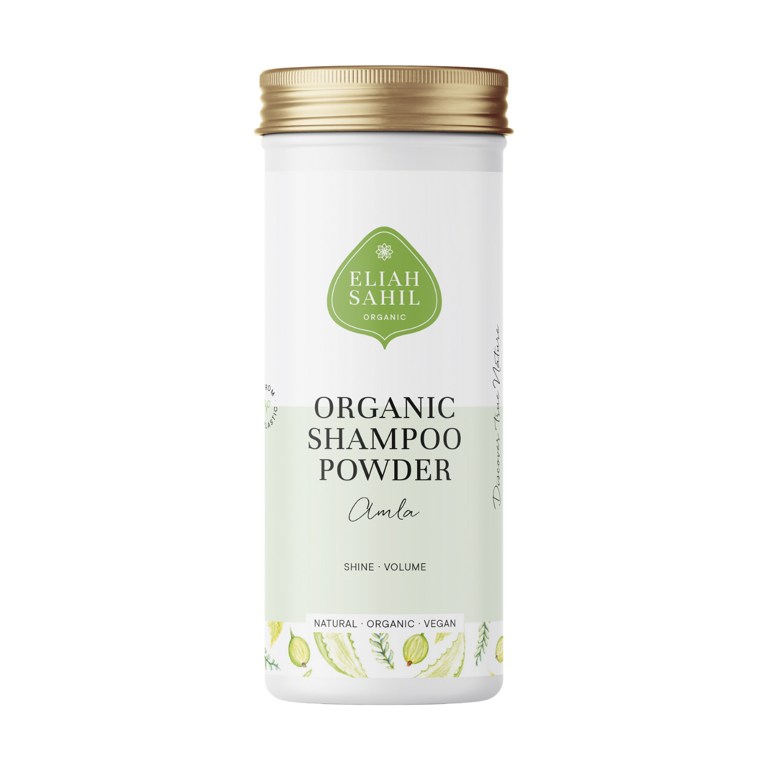 Organicky certifikovaný práškový šampon pro mytí mokrých vlasů vycházející z ajurvédských tradic no poo mytí vlasů.