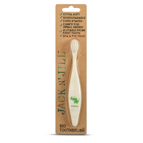 Extra měkký BIO zubní kartáček rozložitelný v přírodě, vyroben ze 100 % kukuřičného škrobu ( geneticky nemodifikovaného ) a měkkých nylonových štětinek. Ergonomická rukojeť je vhodná pro pohodlné uchopení dítětem a snadno se vejde do malé dětské ručičky. Vhodný již od prvních zoubků, bez BPA a PVC.