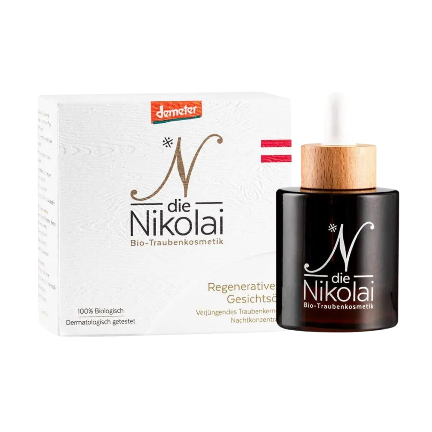 BIO pleťový olej s certifikací Demeter je opravdovým zázrakem proti stárnutí a dokonalou péčí pro náročnou pleť. Díky oleji z biodynamických hroznových jader výjimečně kvality, který pochází přímo z vlastních biodynamických vinic dieNikolai z oblasti Wachau (2000 let staré vinice zaplacené v UNESCO), poskytuje intenzivní výživu, obnovuje hydrataci a ráno je pleť viditelně pevnější, svěžejší a rozjasněná.
