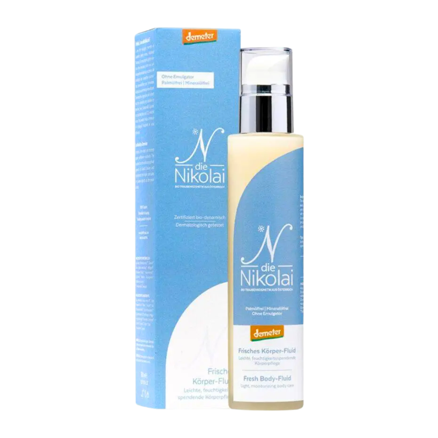 Hydratační tělový fluid dieNikolai je ideálním kosmetickým produktem pro všechny, jejichž pokožka je smíšená, mastná či problematická a vyžaduje dostatek živin během celého dne. Lehká struktura fluidu se ihned vstřebá a díky výjimečnému složení je pleť dostatečně hydratována a vyživena. Biodynamický hydratační fluid se skládá pouze z 11 surovin a je vhodný také po sportu či pro ženy, které trpí návaly horka.
