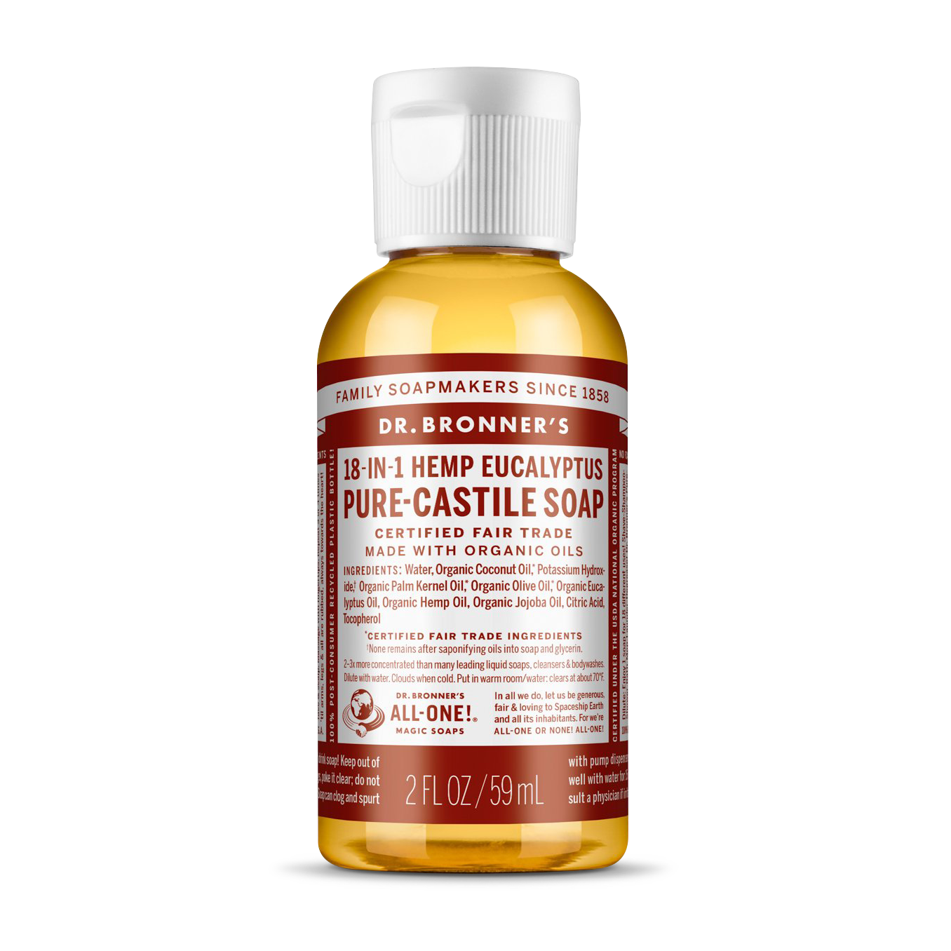 Značka Dr. Bronner´s se pyšní hned několika certifikáty, jako jsou USDA organic, Leaping Bunny či Certified B Corporation. Jejich produkty splňují podmínky FairTrade.
