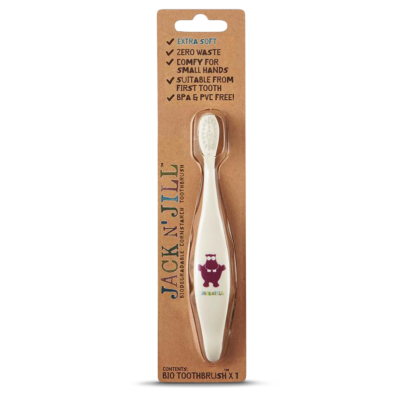 Extra měkký BIO zubní kartáček rozložitelný v přírodě, vyroben ze 100 % kukuřičného škrobu ( geneticky nemodifikovaného ) a měkkých nylonových štětinek. Ergonomická rukojeť je vhodná pro pohodlné uchopení dítětem a snadno se vejde do malé dětské ručičky. Vhodný již od prvních zoubků, bez BPA a PVC.