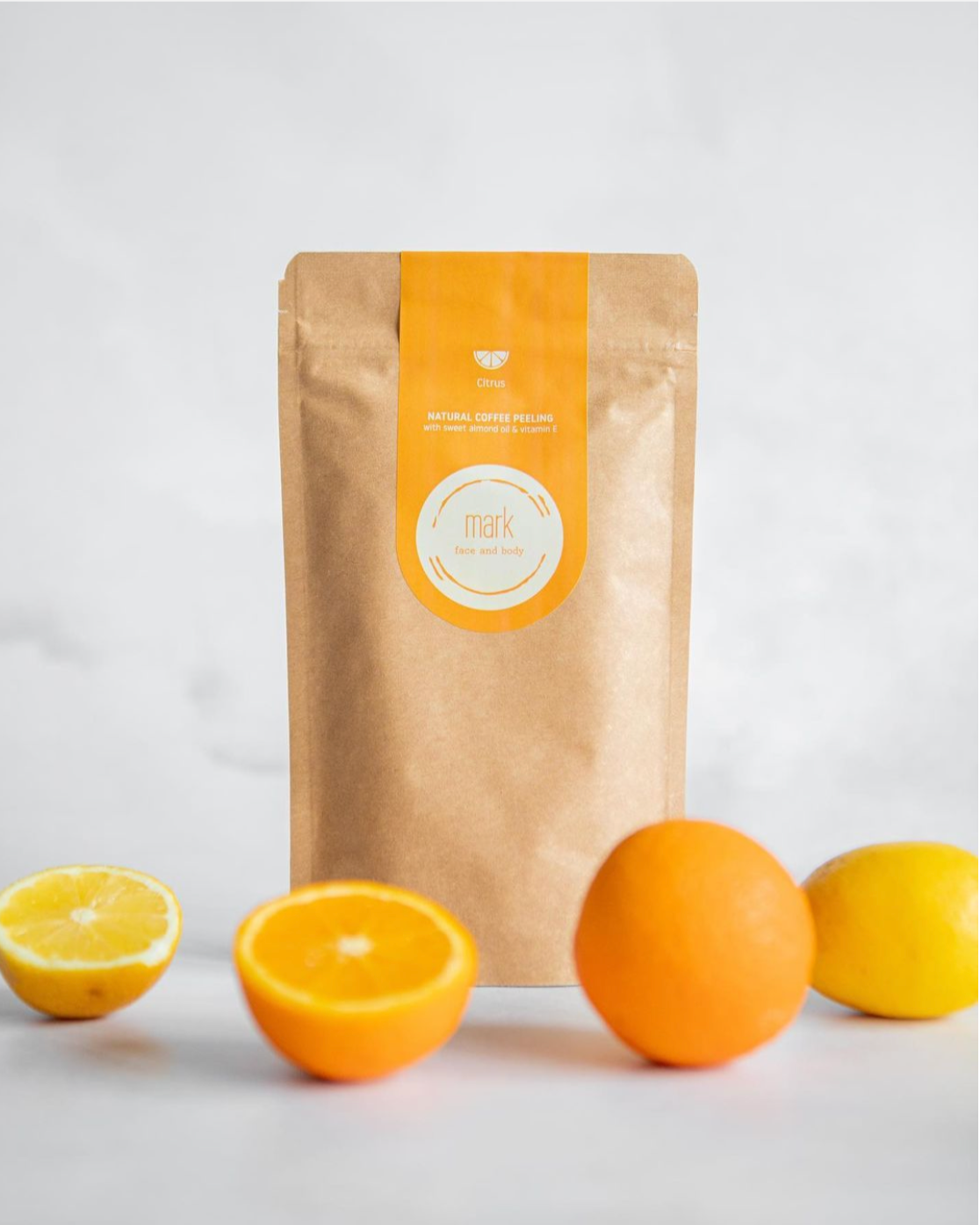 Citrón, mandarinka a pomeranč ve formě přírodních esenciálních olejů spolu s kávou osvěžují, čistí a povzbuzují. S MARK coffee scrub Citrus se budete cítit jako v exotické oáze.