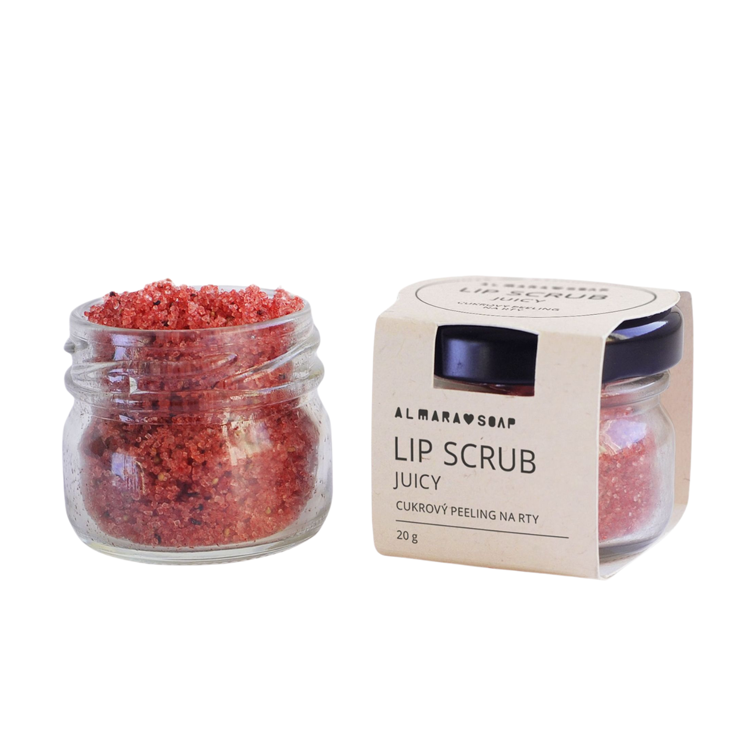 Lip Scrub JUICY Cukrový peeling na rty s vůní jahod a pomeranče