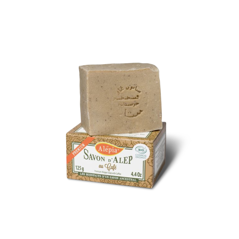 100% přírodní mýdlo obohacené kávou. Díky vysoké koncentraci kofeinu je mýdlo Aleppia ideální pro masáže pokožky. Nejlepších výsledků dosáhnete díky masážím pomocí konjac houbičky, protože propojíte mechanické působení s biologickými účinky kofeinu.