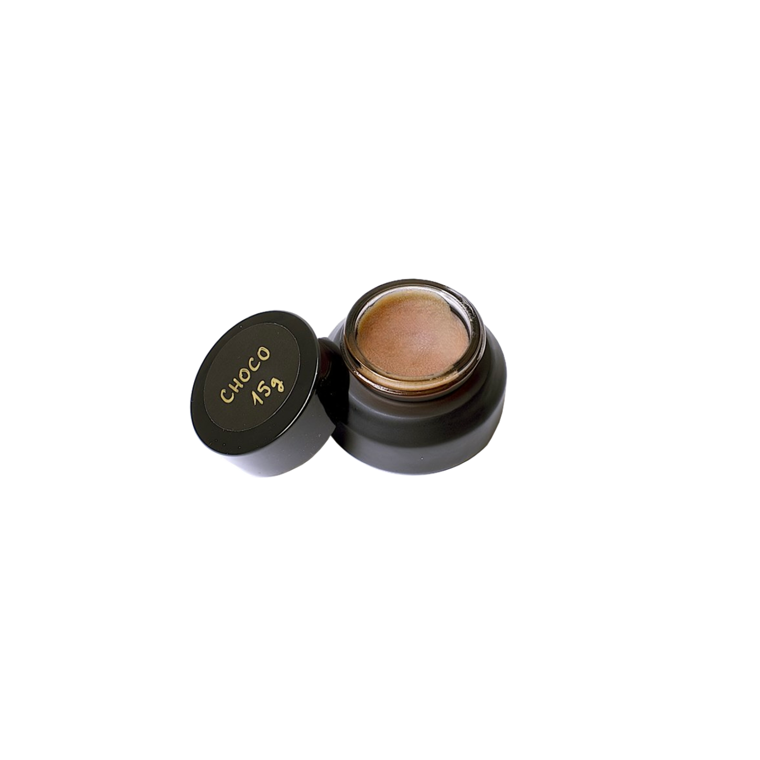 Butyrospermum Parkii Butter (bambucké máslo), Helianthus Annuus Seed Oil (slunečnicový olej), Argania Spinosa Kernel Oil (arganový olej), Sesamum Indicum Seed Oil (sezamový olej), Theobroma Cacao (ceremoniální kakao), Coffea Arabica Seed Oil (olej z kávových bobů), Daucus Carota Sativa Root Extract (extrakt z kořene mrkve), Rosmarinus Officinalis Leaf Extrakt (rozmarýnový extrakt), Oenothera Biennis Oil (pupalkový olej), Cera Alba (včelí vosk), Mel (med), Caffeine (kofein), Calendula Officinalis Flower Extract (měsíčkový extrakt), Vanilla Planifolia Seed (vanilka), Tocopherol (vitamín E), Theobroma Cacao Seed Oil (kakaová esence), Citrus Aurantium Dulcis Peel Oil (sladký pomeranč), Limonene (alergen přirozeně se vyskytující v éterických olejích)
