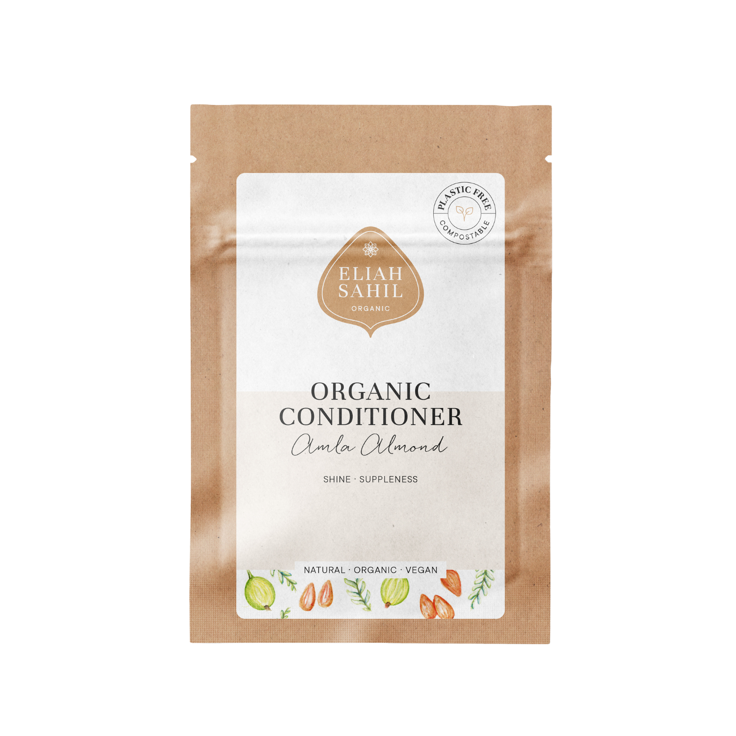Organicky certifikovaný práškový kondicionér AMLA - MANDLE pro péči a mytí mokrých vlasů vycházející z ajurvédských tradic no poo mytí vlasů.