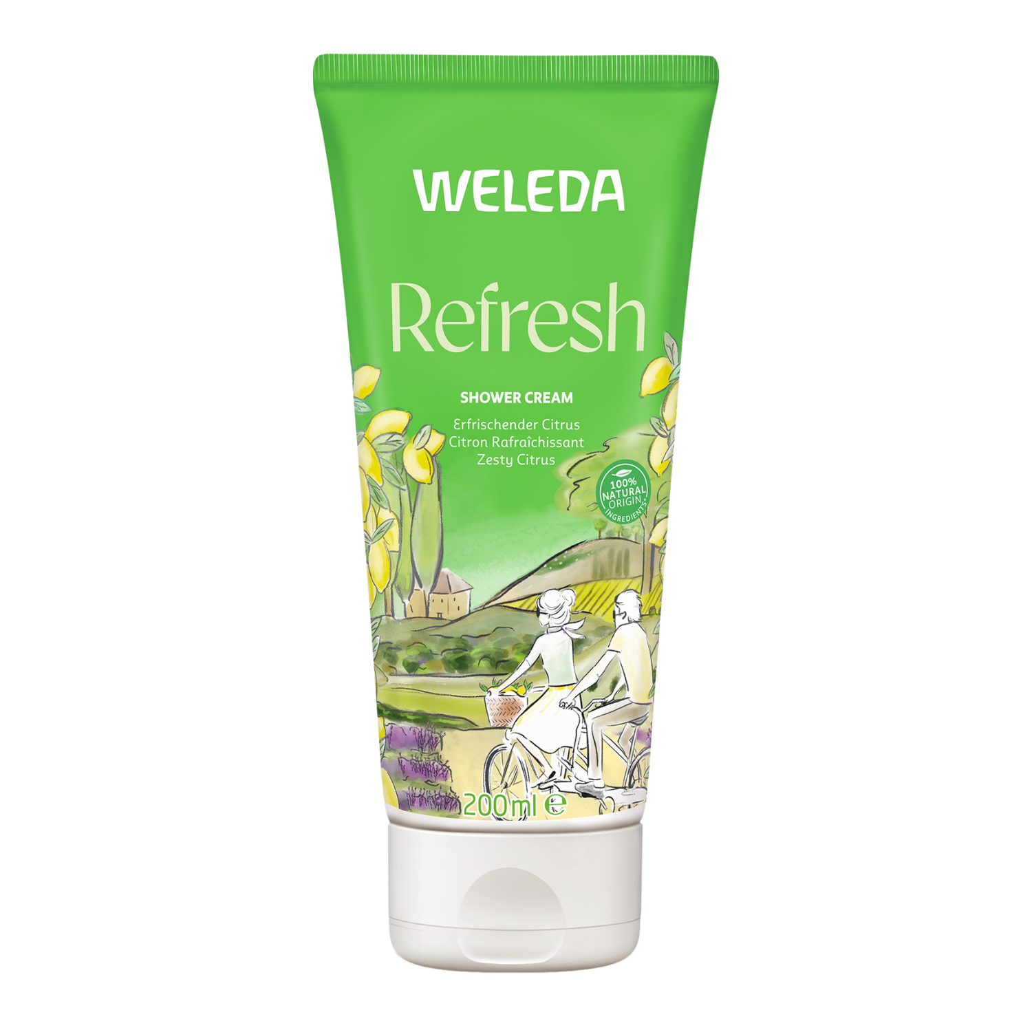 Otočte kohoutkem a vstupte pod proud vody. Sprchový krém vmasírujte do pokožky. Bohatou pěnu nevytvoří, to však nemá vliv na jeho pečující a čisticí vlastnosti. Kůži následně ošetřete Citrusovým hydratačním tělovým mlékem nebo Osvěžujícím tělovým olejem.