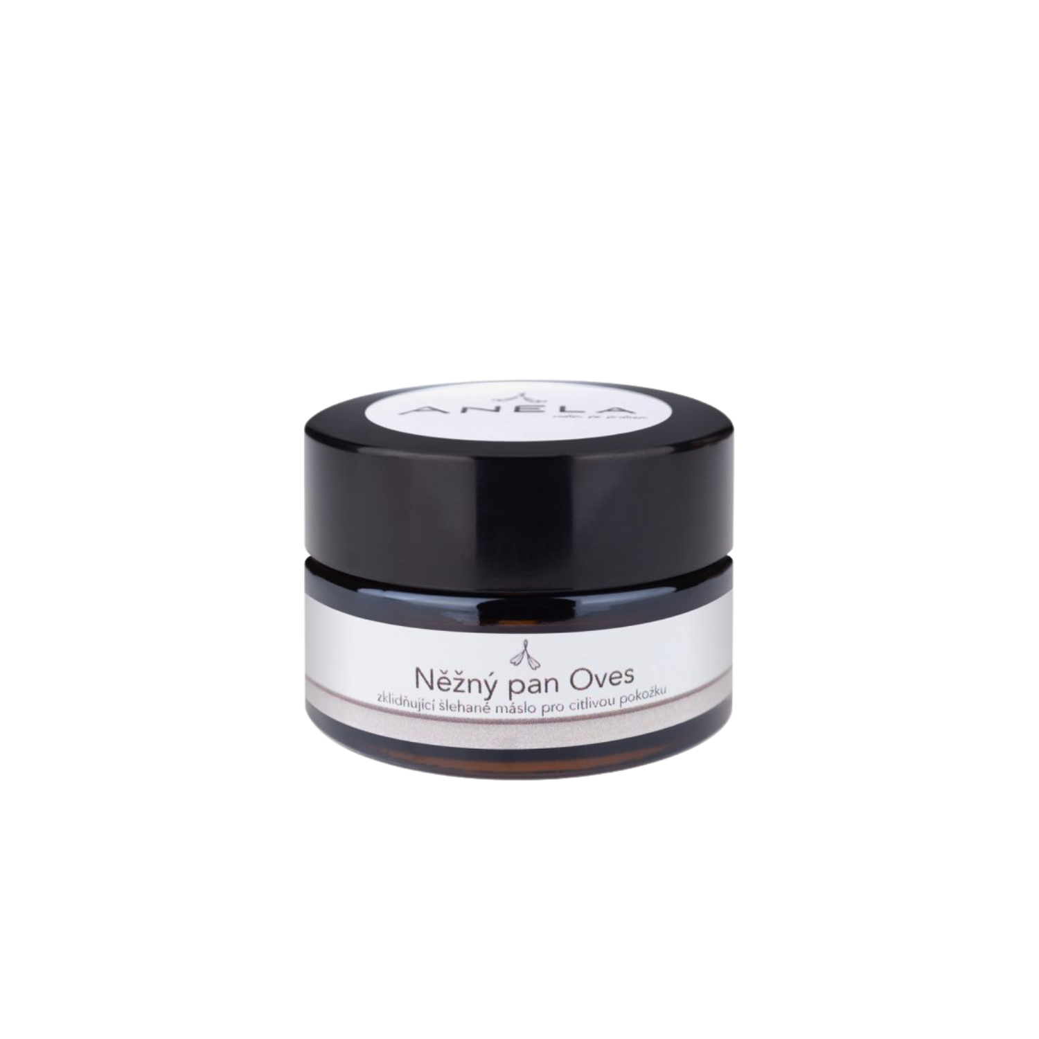Šlehané máslo Něžný pan Oves obsahuje mnoho účinných, čistě přírodních látek, které tyto požadavky umí zajistit. Jeho konzistence je velmi lehká a nadýchaná a na kůži přímo taje a rychle se vstřebává. Můžete jej však použít také jako přísadu do koupele.