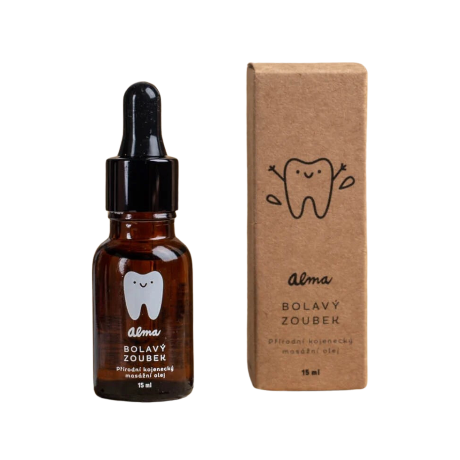 U prořezávajících se zoubků je potíž v nahromaděné krvi, horkosti a tepání v dásních a oblasti celé pusinky. Použitý makový olej pomáhá uvolňovat toto napětí a tenzi. Mandlový olej patří mezi nejpoužívanější oleje v péči o dětskou, citlivou pokožku. Bohatý macerát z levandule a heřmánku působí jako lehká sedativa a má tišící účinky. Heřmánek stahuje a uklidňuje bolavé dásně. Obě dvě byliny jsou navíc antiseptické a v neposlední řadě navozují klid a harmonizují psychiku (hlavně u dětí). Účinek macerátů je v oleji podpořen esencemi z levandule a heřmánku římského. Řebříčková esence pomáhá tlumit bolesti kostí a hlavy a používá se hlavně k léčbě problémů dutiny ústní. Nejdůležitější je však trpělivost. Nebojte, zuby jednou vylezou!