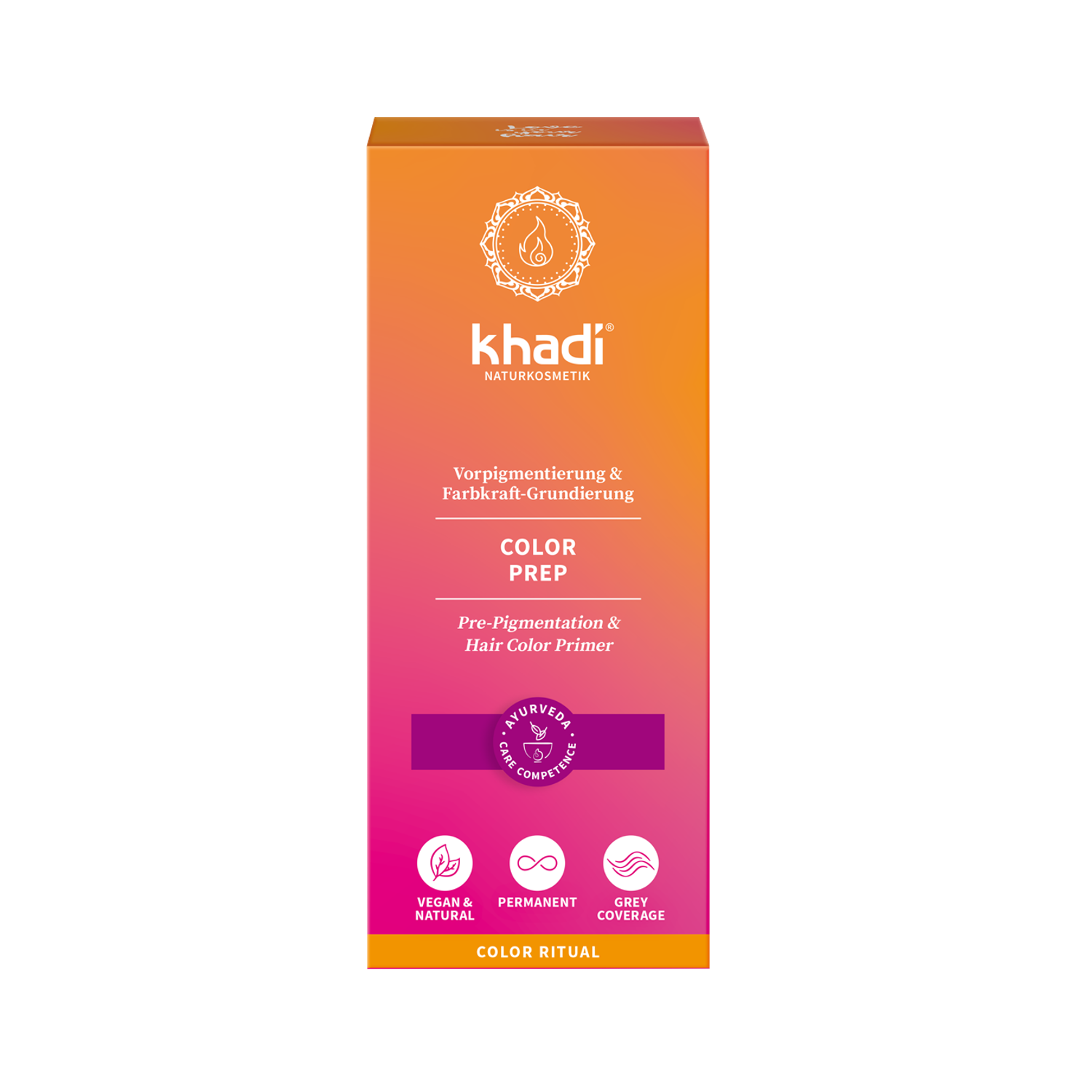 Khadi Color Prep není pouze předpigmentací. Avšak díky obsahu rostliny senna neboli cassia působí jako regenerační keratinová kúra. Posiluje a chrání vlasy a vyhlazuje vlasovou strukturu poškozených pramenů. Tradiční ajurvédská jujuba (ziziphus) dodává vlasům hydrataci, regeneruje je skrz naskrz a dává jim zářivý lesk. Díky obsahu rostliny henna vzniká ve vlasech teplý odstín, který je perfektním barevným základem pro barevný "skok" z šedých či velmi světlých vlasů do tmavých či popelavých odstínů. Kromě toho henna intenzivně pečuje o pokožku hlavy a posiluje vlasy od kořínků ke konečkům.