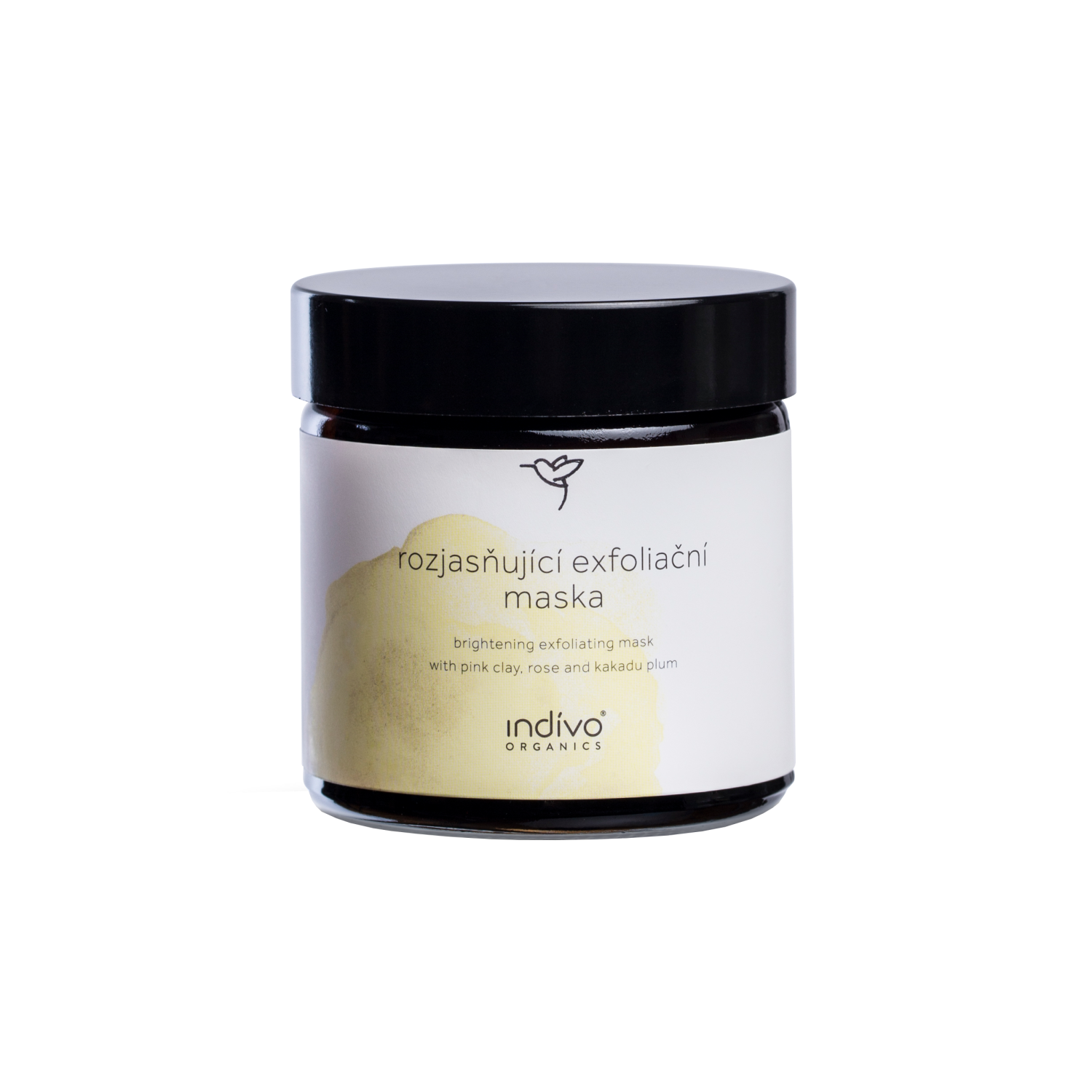 Základem této masky jsou jíly spolu s mletými květy damašské růže. Růže má také velmi vysoký obsah vitamínu C a stejně tak obsahuje onu kyselinu gallovou. Do masky jsme pro podpoření rozjasnění pleti přidali ještě mrazem sušenou šťávu z citronu, mletý list medvědice lékařské a mletý květ sedmikrásky. Maska voní jemně po růžích...